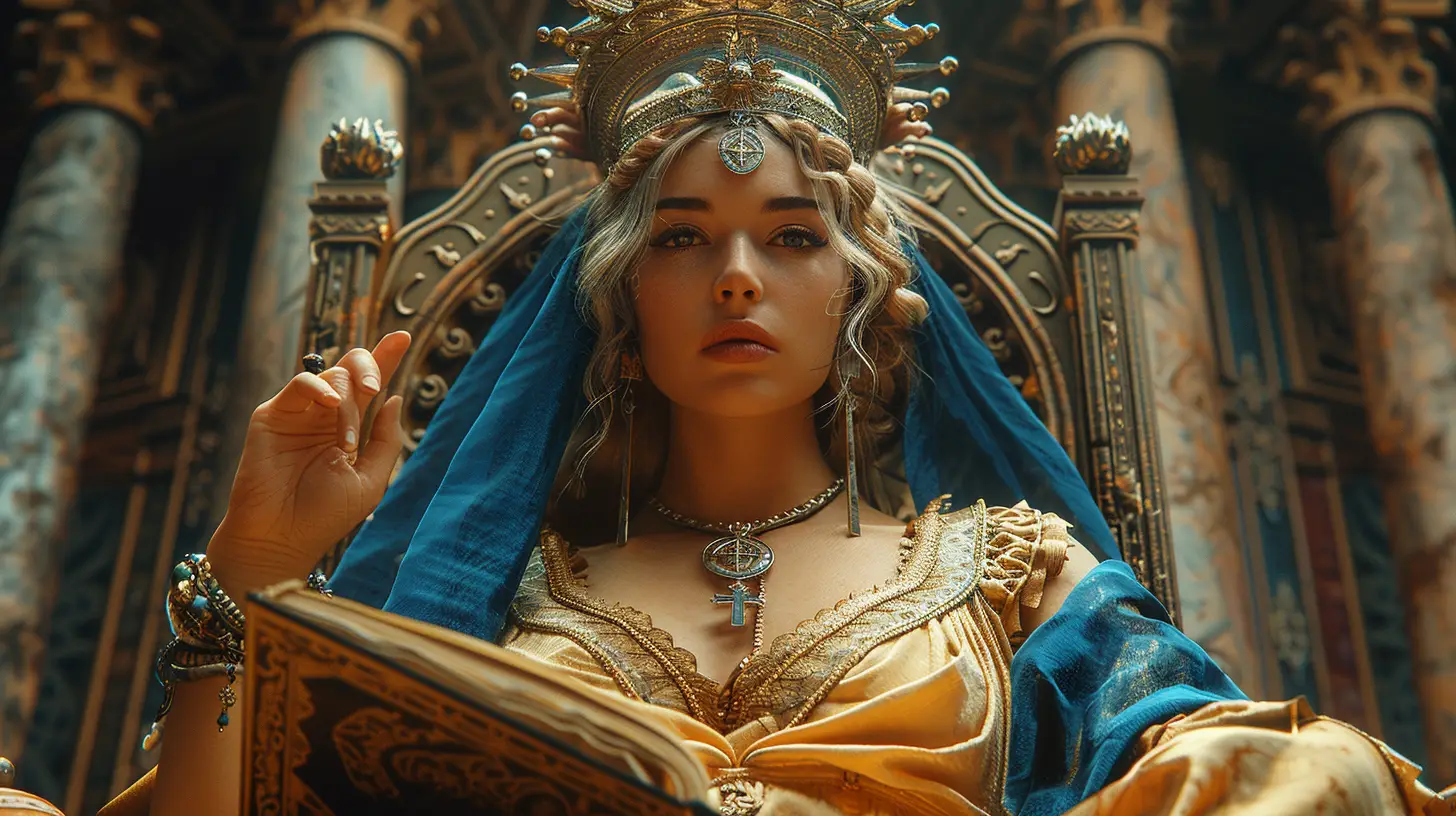 La Papesse, également connue sous le nom de la Grande Prêtresse dans certains jeux de tarot, est une figure de sagesse qui combine l’intellect et l’intuition. Elle est souvent représentée assise entre deux colonnes, tenant un livre ou un rouleau, symbolisant la connaissance ésotérique. En tant que mère spirituelle, elle est une femme qui cache ses forces dans un monde dominé par les hommes. Son apparence modeste contraste avec la profondeur et le potentiel de ses connaissances.